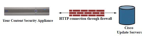This method requires that your appliance contacts the Cisco content security update servers directly from the network.